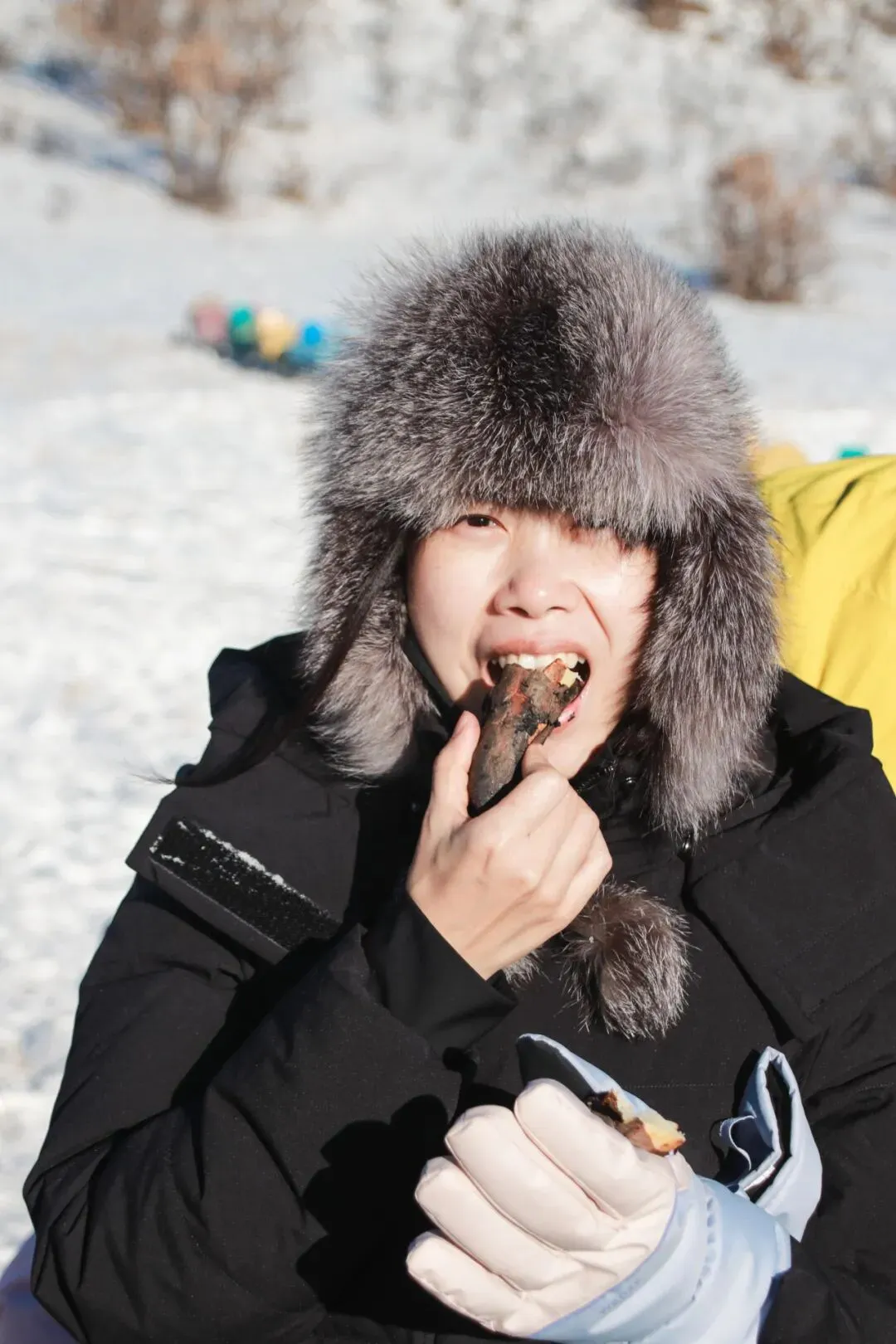 解锁雪原的“隐藏菜单”——牛粪烧土豆雪原上的牛粪是牧民世代使用的天然燃料,点燃只会散发淡淡的草木香。用牛粪烤制的土豆与红薯焦香软糯,是独一无二的雪原记忆。