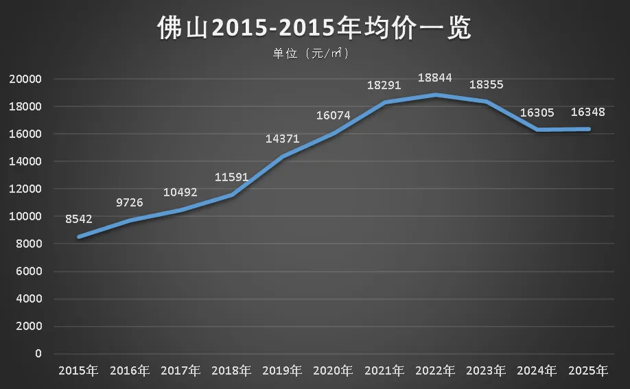 看房价,从全市来看,2025年佛山一手住宅均价约16348元/㎡,同比上涨0.26%。
