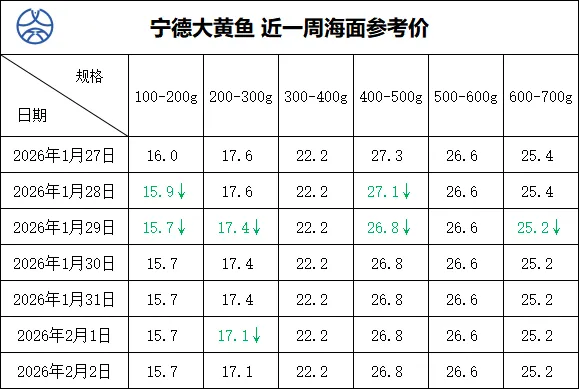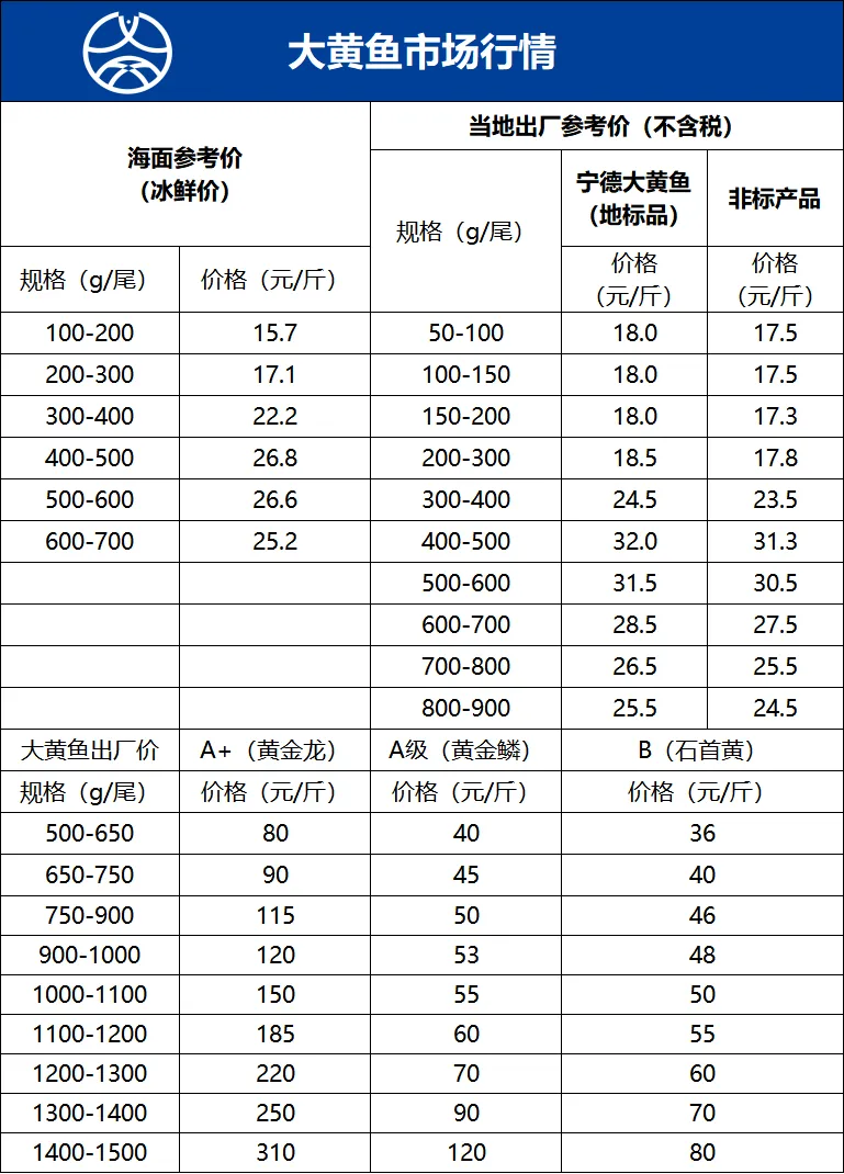 宁德地区大黄鱼海面收购价(冰鲜价)和
