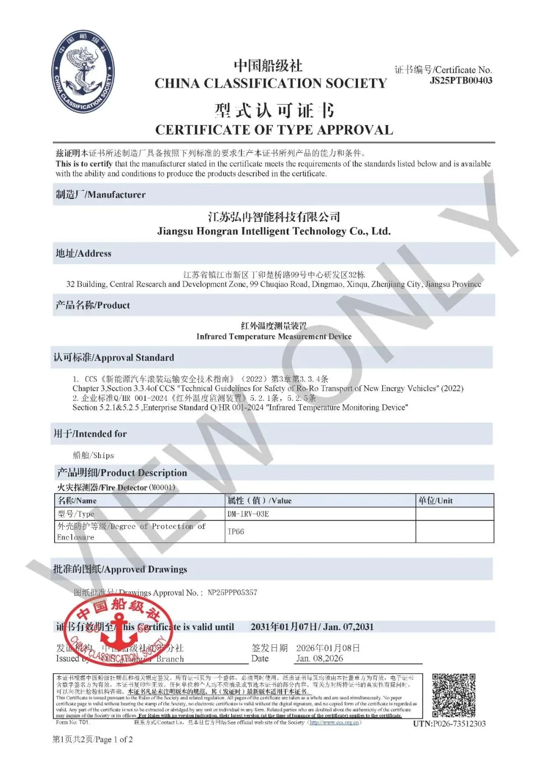 No.1 国内第一张《红外温度测量装置》证书