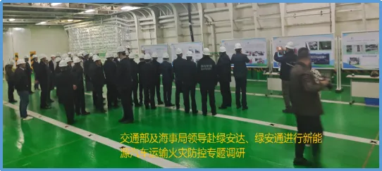 交通部及海事局相关领导莅临项目现场,针对 “新能源汽车运输火灾防控” 进行了专题调研 。领导们对弘冉智能在提升滚装运输安全性方面所做的技术创新给予了充分肯定,并对未来的行业标准化应用提出了宝贵指导。