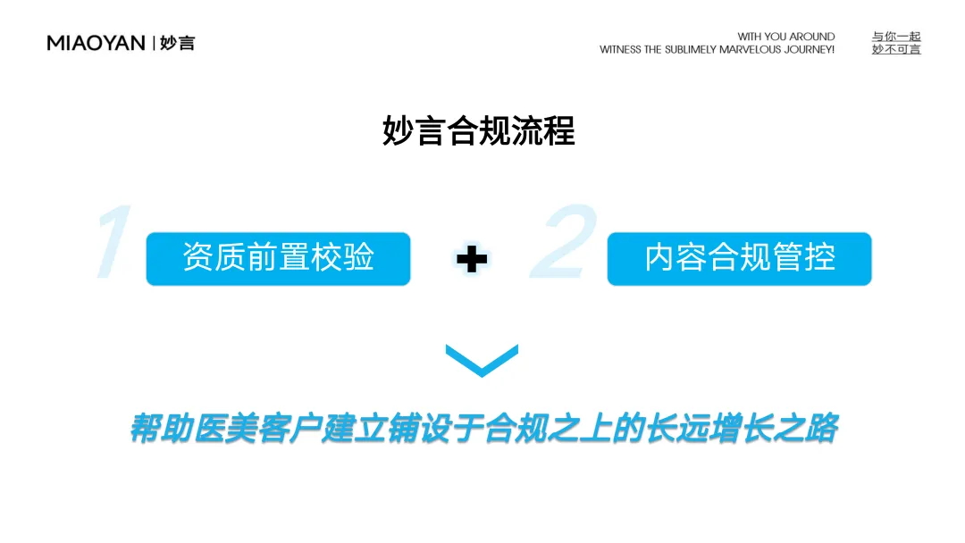 深耕医美行业,妙言组建了专业合规团队,为客户的合规经营提供支持,覆盖从资质前置核验到内容发布审核的全链路保障。
