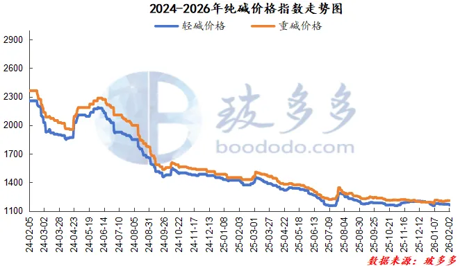 后续供应端检修与复产并存,行业供应高位徘徊;下游补库动力不足,仅部分企业节前适度采购;面临春节休假与高库存压力,纯碱厂家灵活接单可能性较大,短期市场价格或仍承压。