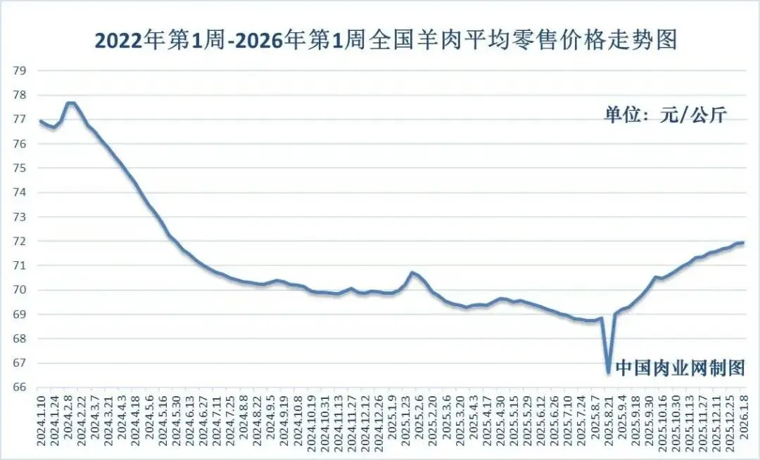 羊肉批发全国平均价格为31.92元/斤,今天比昨天上升↑0.1%
