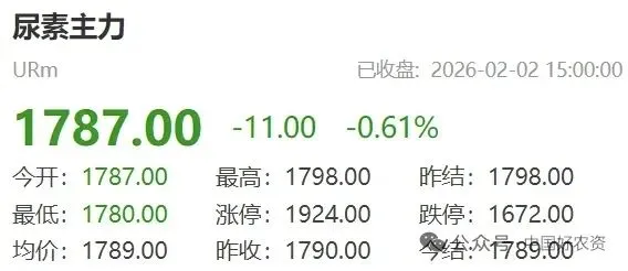 今天,尿素主力期货URm行情收盘小幅下跌。