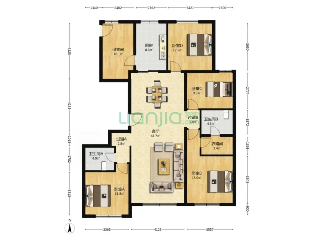 今天先梳理北京朝阳的超级神盘,望京东的保利中央公园,具体以小区中成交量比较大,改善户型的代表,146平米四居为例(赠送了一个房间,相当于4+1,可以改成五房)。