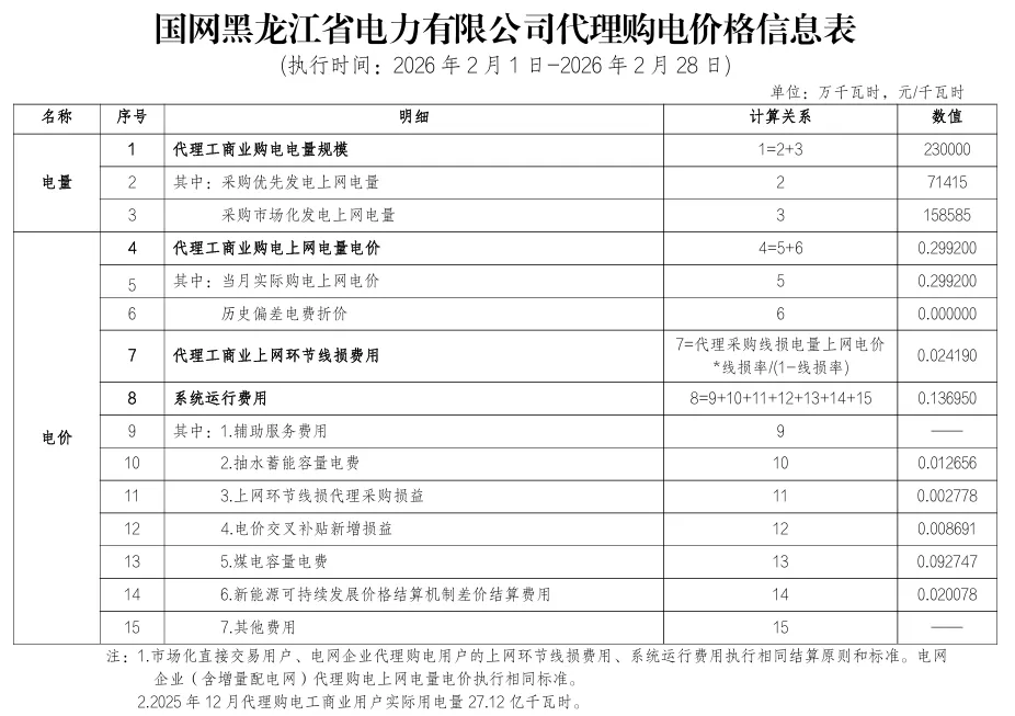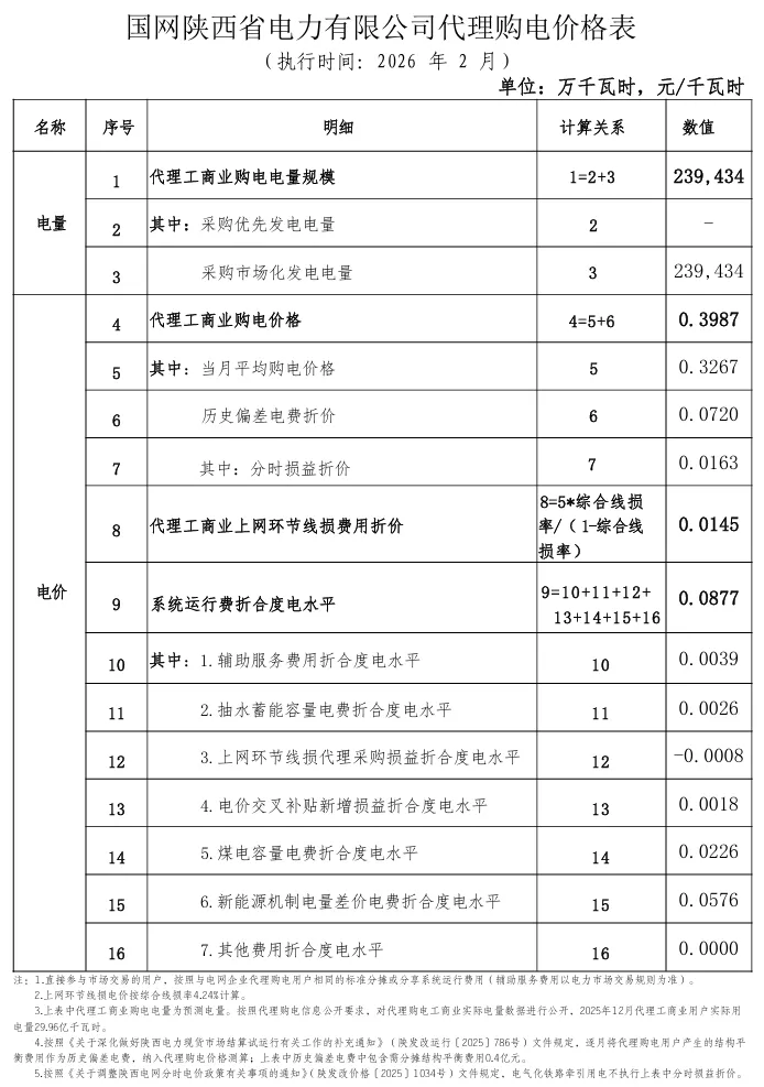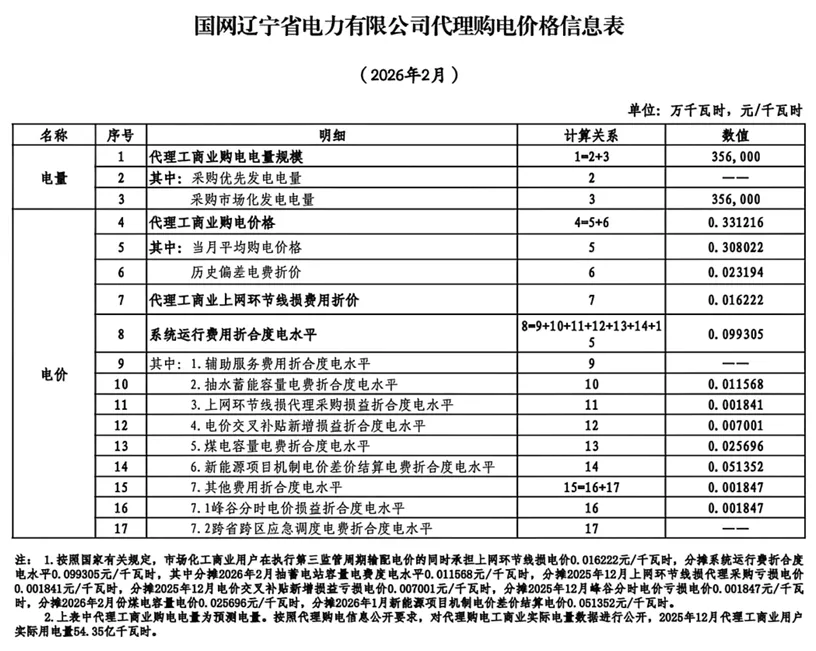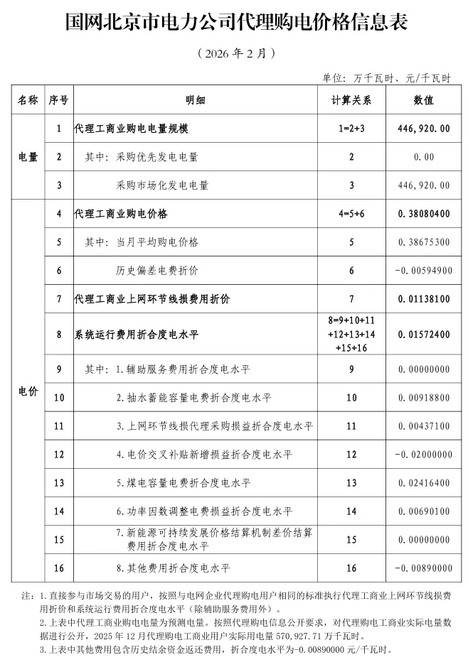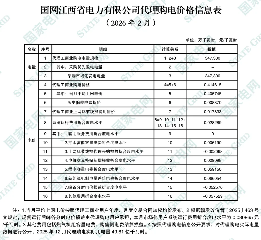 2026年2月全国各地电网企业代理购电价格公布,顺序依次为:江苏、安徽、广东、山东、山西、北京、河北、冀北、浙江、上海、重庆、四川、吉林、蒙东、江西、湖北、湖南、青海、宁夏、陕西、天津、甘肃、新疆、广西、海南、贵州、云南、深圳、福建、黑龙江、辽宁、蒙西(河南暂未公布)。