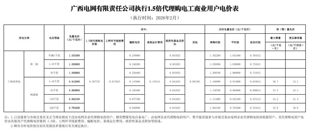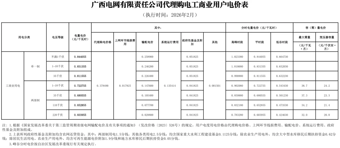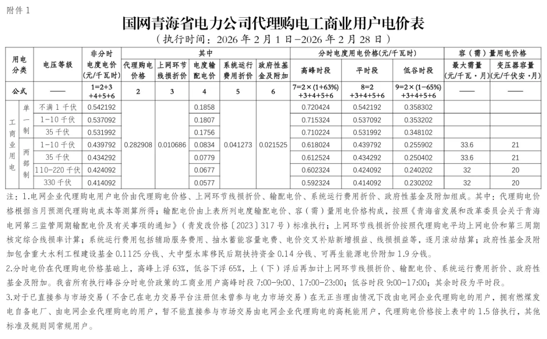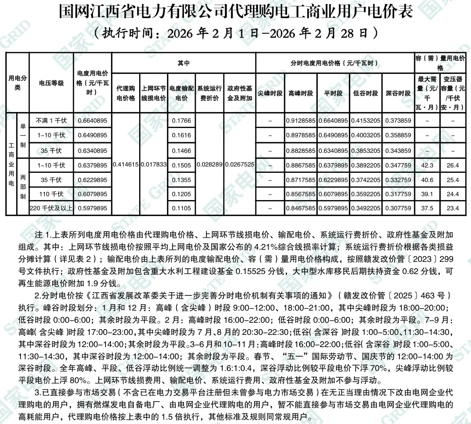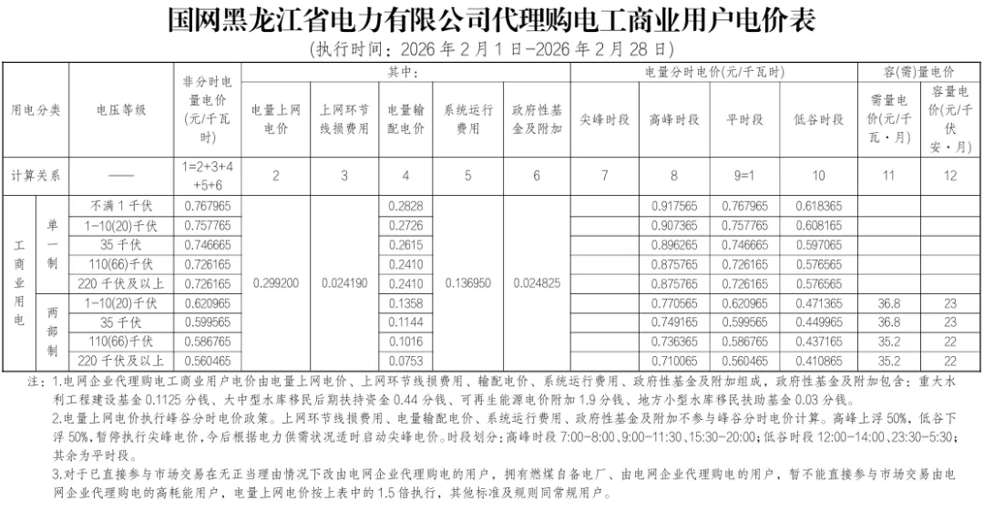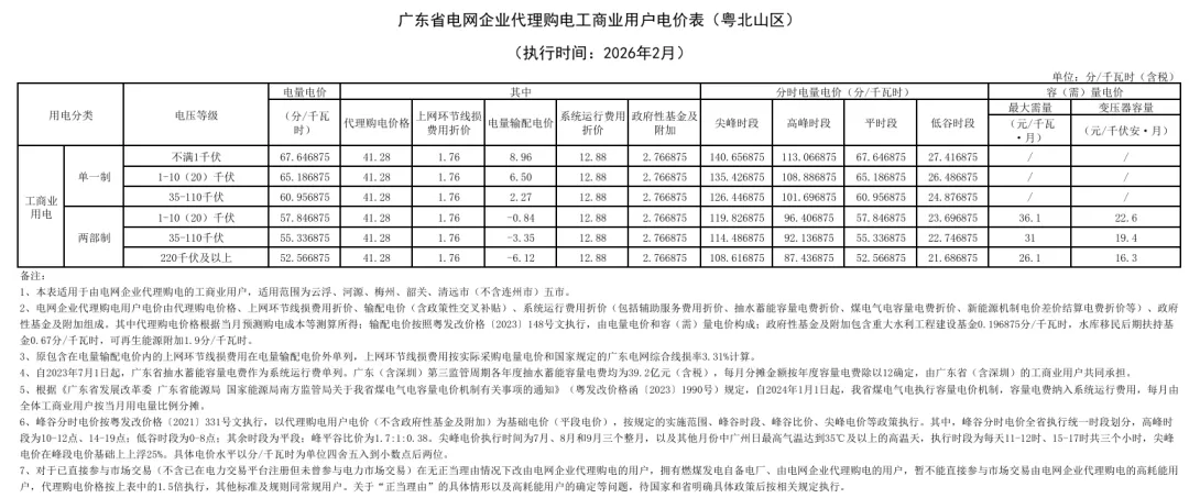 2026年2月全国各地电网企业代理购电价格公布,顺序依次为:江苏、安徽、广东、山东、山西、北京、河北、冀北、浙江、上海、重庆、四川、吉林、蒙东、江西、湖北、湖南、青海、宁夏、陕西、天津、甘肃、新疆、广西、海南、贵州、云南、深圳、福建、黑龙江、辽宁、蒙西(河南暂未公布)。