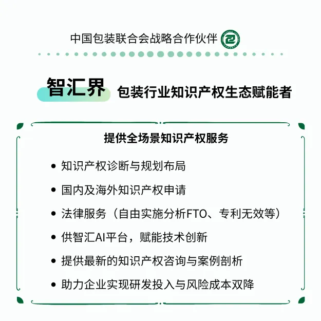 如需获取本次分享完整课件及内容回放,扫码申请免费试用智汇平台。未来,智汇界将持续推出 IP 护航月享会系列活动,聚焦更多行业热点与技术前沿,敬请期待!【我们的核心优势】- 包装行业知识产权赋能者