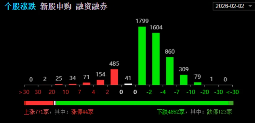 今天市场低开低走,两市指数大幅下杀,贵金属受到周末金银大跌的影响,跌停一片,直接影响盘面情绪,导致横盘被跌破,下午恐慌情绪加大,市场进一步走弱。