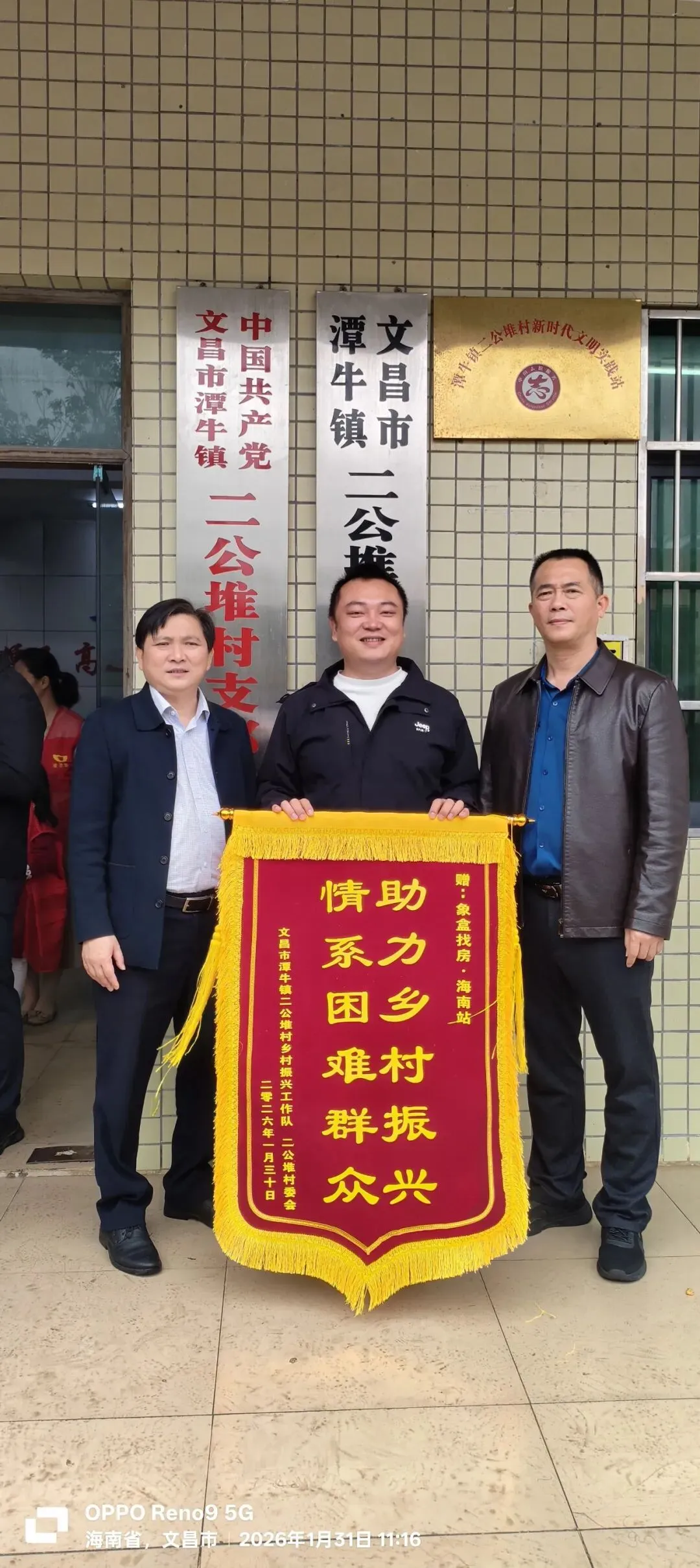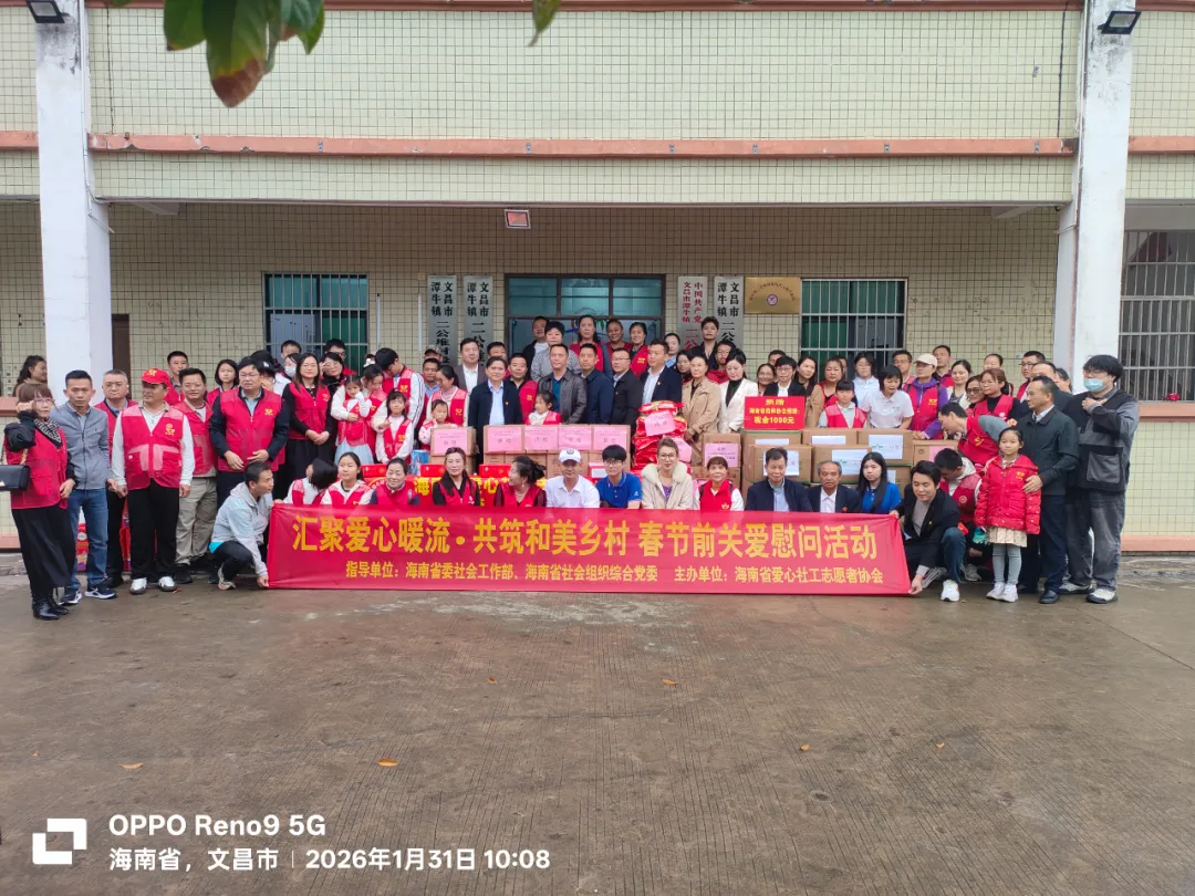 岁寒情深暖人心,新春慰问传党恩。在 2026 年新春佳节即将来临之际,为让乡村特殊困境群体感受到我们行业爱心企业对他们的的关怀与温暖,度过一个温馨祥和的春节,1 月 31 日上午 10 时,由海南省房地产中介行业协会,联合海口市房地产中介行业协会及琼海市房地产中介行业协会积极参与乡村特殊困境群体的关爱慰问活动,在文昌市潭牛镇二公堆村委会隆重举行。