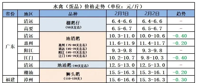 2026年2月3日全国鲜鸭蛋价格