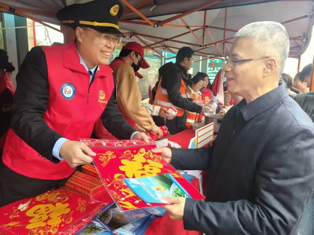 活动现场暖意融融,“暖冬驿站”早早备好热水姜茶、春节喜庆物品、应急药品和交通安全宣传资料,志愿者为老人、儿童等重点群体提供“一对一”帮扶,协助使用自助设备、搬运行李;自治区交通运输综合行政执法局第三支队的交通运输执法人员主动靠前服务,向过往司乘送上福字、对联,同步发放交通法治宣传手册,普及出行相关法律知识与安全注意事项。