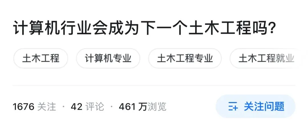 说到底,现在无论哪一个行业,都需要计算机的加持,需要程序员来解决实际问题。计算机行业不会成为下一个土木工程,而是会改造像土木工程这样的传统行业,赋予其他行业新生命。