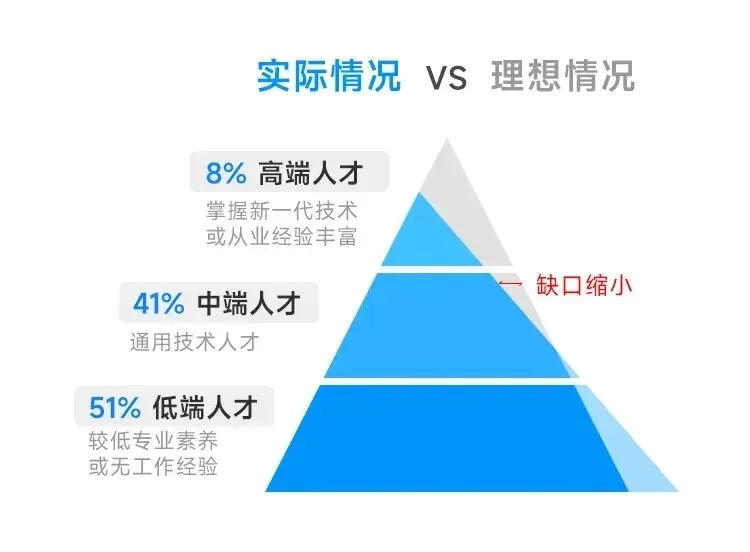 从企业的招聘中也能看到,目前企业已经几乎不招聘初级开发了,而是愿意用高薪吸引中高级开发工程师。据相关报告,我国计算机行业对高端人才的需求非常大,中高端人才供不应求!以人工智能、大模型、算力等为代表的新兴领域,对IT人才需求仍然在持续放大。