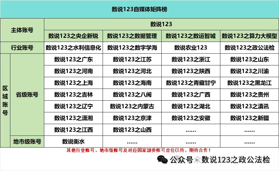 数说123之政公法检是北京数说政通科技有限公司旗下自媒体矩阵“数说123”专注于政法(公检法司)行业数字化的创新媒体与服务平台,提供招投标数据定制、商机捕获、数据支撑、行业洞察、渠道建设、厂商对接、解决方案提供、自媒体宣传等专业服务。