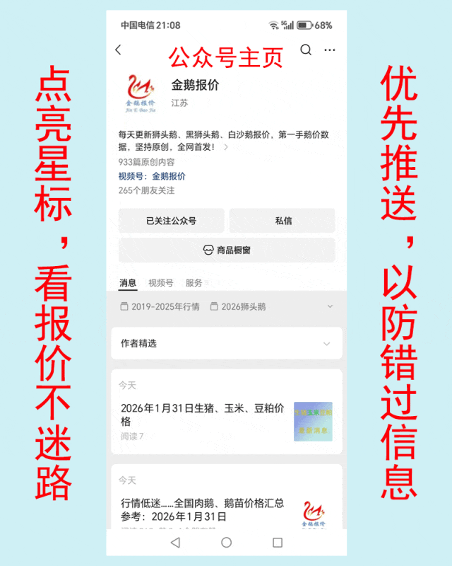 【大鹅微评】今日黑狮大鹅价格暂时稳定。日龄较老的价格较高,单独挑大个以及挑全公的价格较高。按质论价,报价仅供作趋势参考,不作为成交依据。实际成交价格混乱,在报价范围上下略有浮动属正常现象。卖鹅的养户朋友欢迎留言自家卖鹅的成交价供大家参考,谢谢。 |