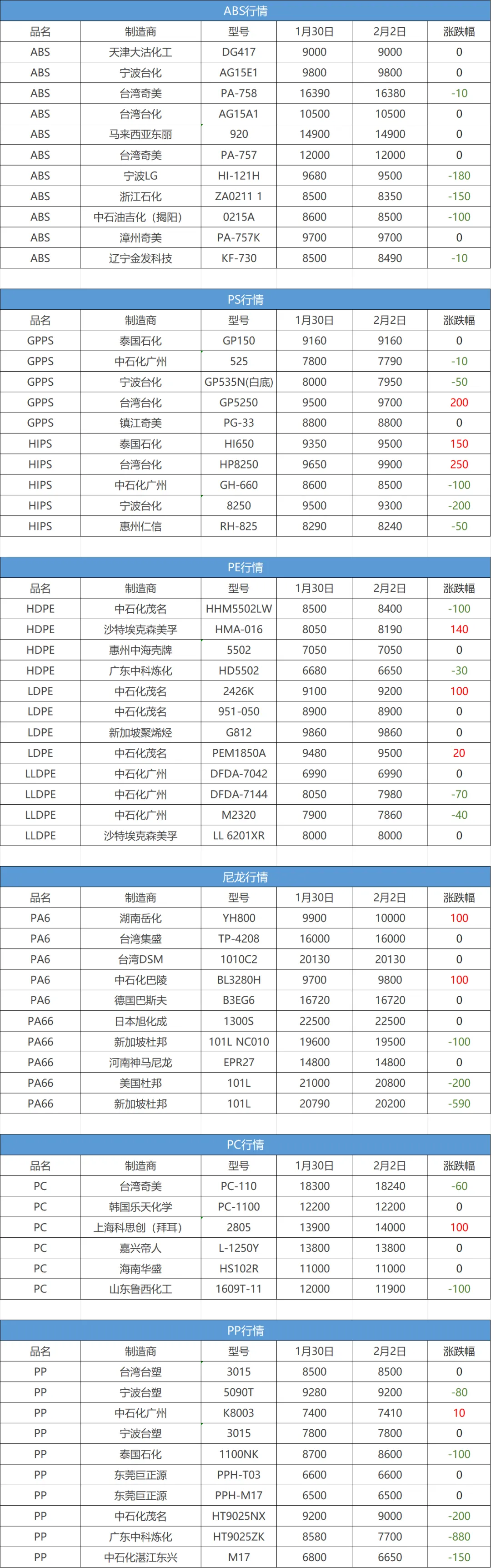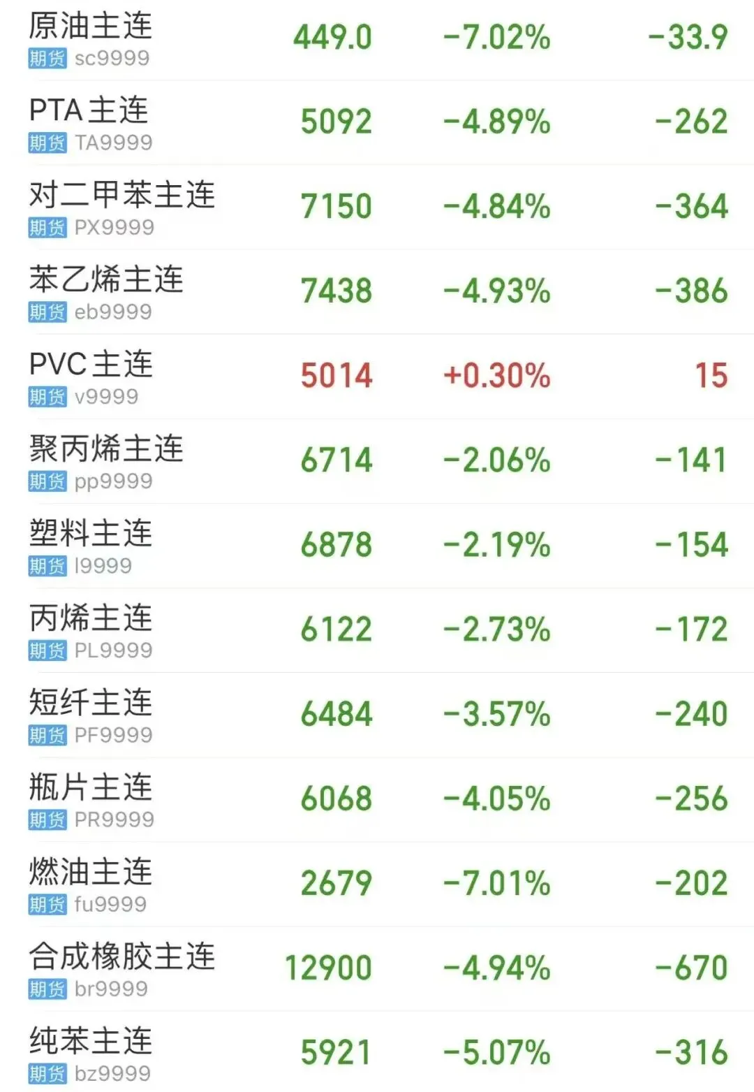 下面一起来看看今日塑料行情:周一国际原油价格走跌,国内化工能源市场全线下跌,原油主力跌超7%,纯苯跌5.07%、PTA、苯乙烯、对二甲苯跌超4%,短纤跌3.57%,瓶片、塑料、丙烯、聚丙烯均有不同程度跌幅。