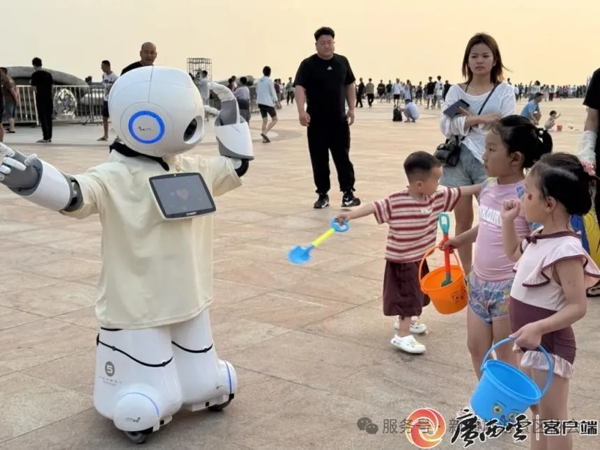 广西旅游景区首台U05类人型机器人与游客互动(图源:广西云客户端)