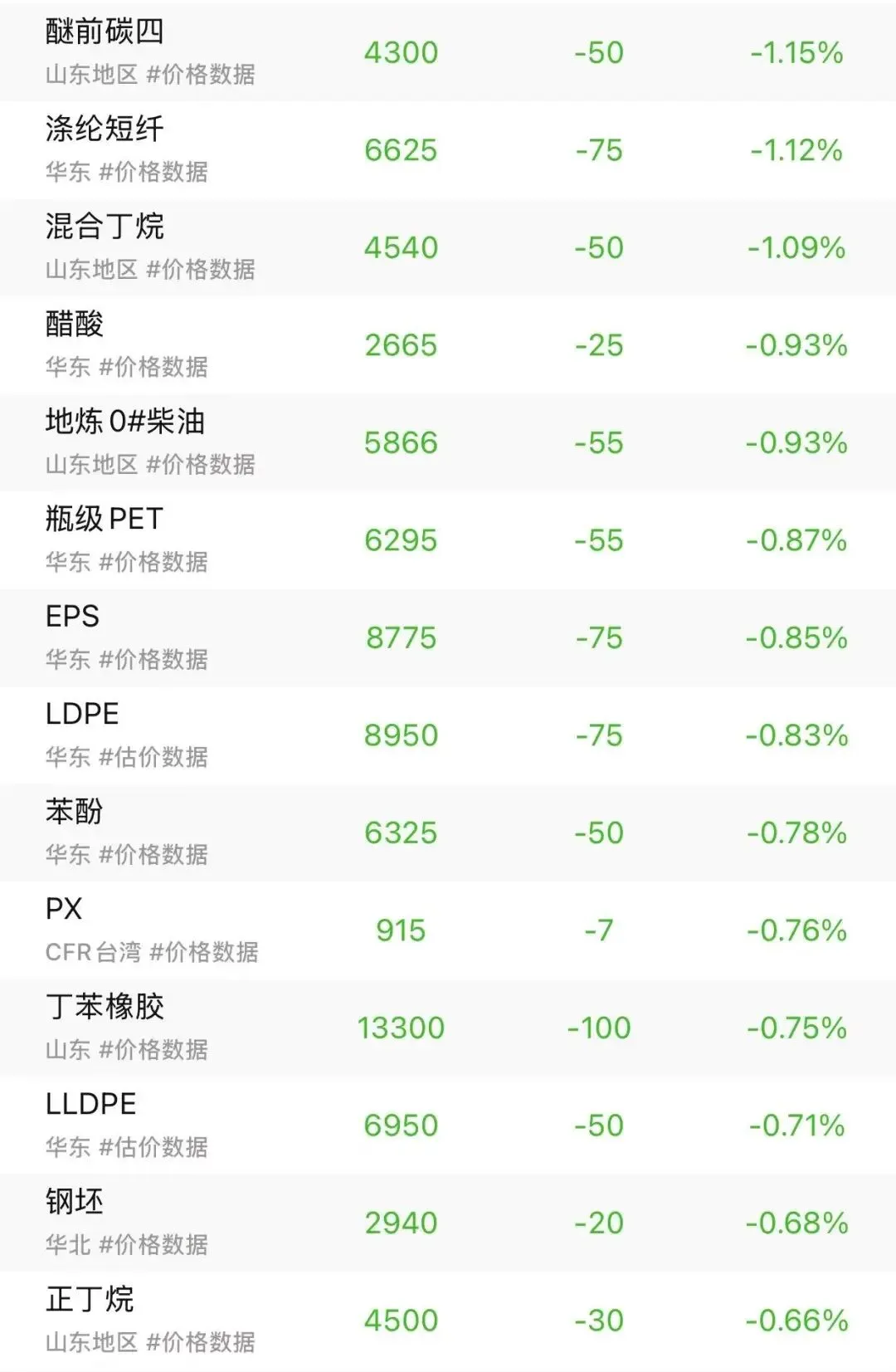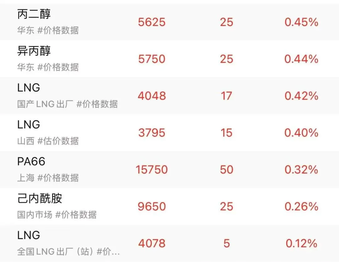 关注我,提前知晓化工原料涨跌