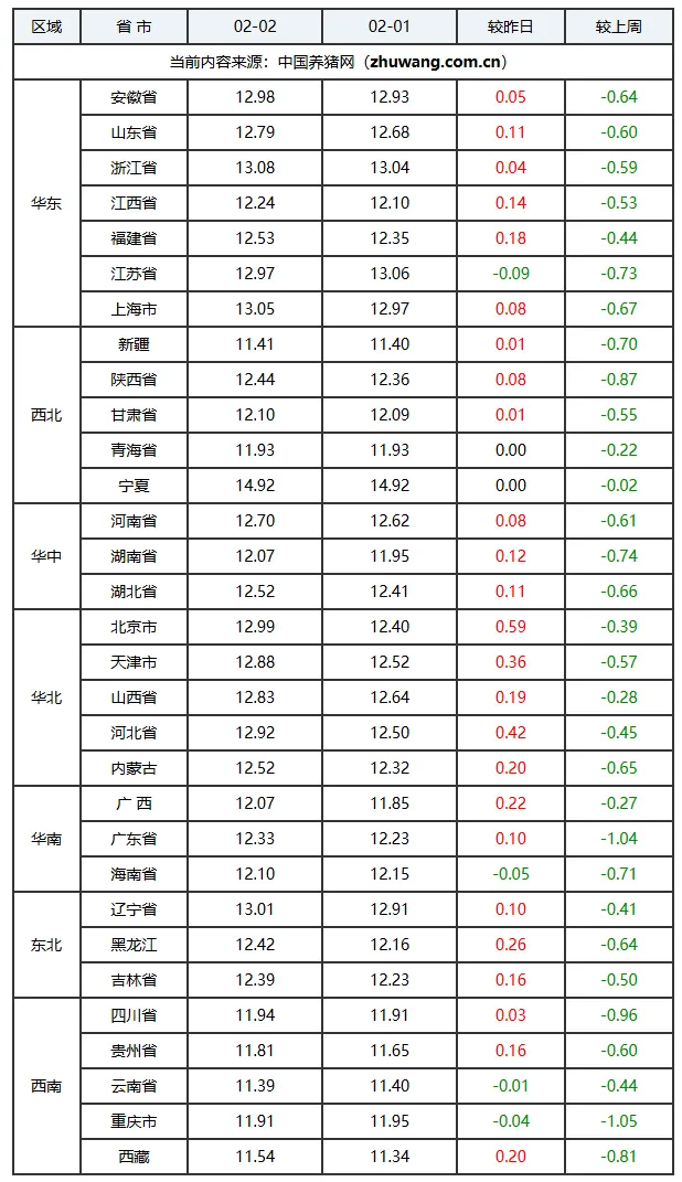 02月03日相关地区价格表
