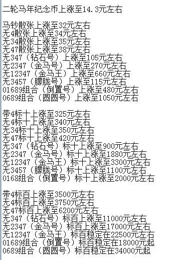 所以如果大家手里有,或者出于投资目的想入手马钞,就尽量选精品靓号,好号的标十标百,通货带347的普通号不会有好的突破。
