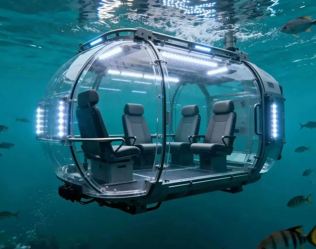 文旅级潜航器的技术演进核心是“以游客体验为中心”的功能升级,路径从“单一观景”向“智能交互”延伸。观景系统突破传统玻璃视窗限制,采用符合GB/T 7134标准的高强度有机玻璃,打造360度全景观景舱,部分高端型号配备4K水下摄像与实时投屏功能,支持游客即时分享水下影像。AI视觉识别技术的应用使潜航器具备海洋生物自动识别能力,配合语音导览系统,为游客提供沉浸式科普体验,实现“观光+教育”双重价值。