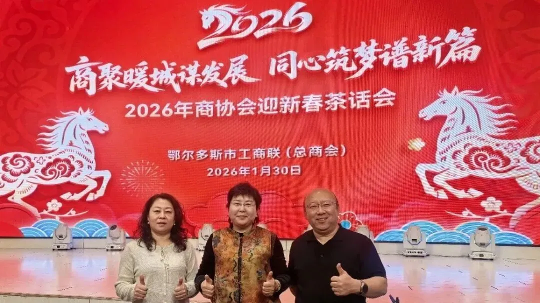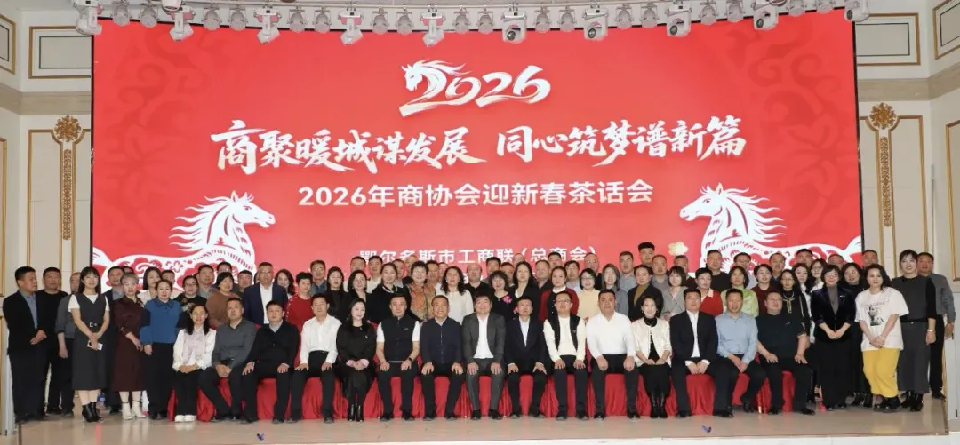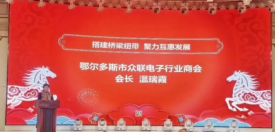 2026年1月30日,鄂尔多斯市工商联(总商会)召开2026年商协会迎新春茶话会 ,市委常委、统战部部长布仁其木格出席并讲话,市工商联主席、总商会会长聂永胜主持会议。市委统战部副部长、工商联党组书记杨志忠,市工商联党组成员副主席韩磊及市委社工部、市民政局有关负责人和全市直属商协会、部分埠外商会、基层商会负责人,各旗区工商联主要负责同志等150多人参加会议。 布仁其木格部长做了重要讲话,会上也传达了中央、自治区及我市经济工作会议和两会精神。 会议宣读了内蒙古自治区和鄂尔多斯市“四好商会”建设优秀案例通知 ,鄂尔多斯市众联电子行业商会喜获内蒙古自治区“四好商会”建设优秀案例。鄂尔多斯市众联电子行业商会会长温瑞霞、常务副会长王竹青、常务副会长左立刚应邀出席了会议。 鄂尔多斯市众联电子行业商会会长温瑞霞做了主题为“搭建桥梁纽带、聚力互惠发展”的“四好商会”建设案例相关汇报。载誉前行,步履铿锵。本次成功入选 “四好” 商会建设优秀案例,既是一份沉甸甸的荣誉,更是一份责无旁贷的使命。未来,鄂尔多斯市众联电子行业商会将以此次表彰为新起点,珍视荣誉、接续奋进,持续深耕 “四好” 商会建设工作,不断锤炼服务本领、提升服务质效,切实当好政企沟通的坚实桥梁与紧密纽带,为打造“六个暖城”贡献一份力量。