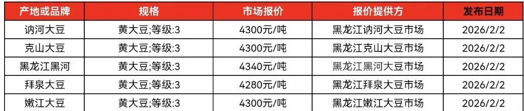 国内市场后续走势来看,今日中储粮大豆单向竞拍成交溢价表现突出,在备货需求释放与优质粮源稀缺的双重作用下,贸易商持货惜售、看涨情绪依旧坚挺。尽管节前部分地区粮库暂停散户大豆收购,但全国范围内的大豆收购工作并未全面停滞;叠加当前市场大豆余粮偏少,整体供应端仍处于偏紧格局。虽下游消费端表现较往年同期略显疲软,但综合供需基本面来看,国内大豆市场仍存上行驱动,不过预计后续涨幅将相对温和。