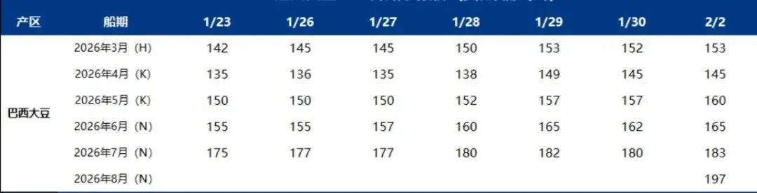 国际市场方面,截至1月30日当周,CBOT大豆期货基准合约小幅走弱,最终收低0.33%至1064.25美分/蒲式耳。此轮调整主要受巴西新豆产量预估持续上修、收获进度加快,以及美国大豆出口销售节奏放缓、市场对中国后续美豆采购意愿存疑等因素拖累;不过阿根廷产区持续的高温干旱天气引发市场对其产量的担忧,叠加美元指数走弱形成的支撑,一定程度上缓解了盘面的下行压力。