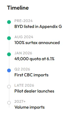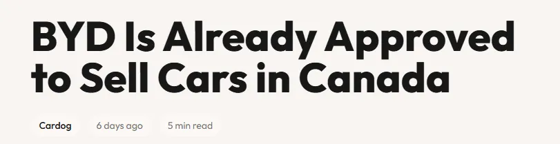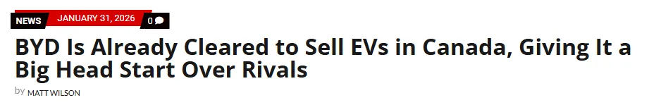 “我在泰国坐过几辆比亚迪出租车,它们给我留下了非常深刻的印象,感觉非常好。”参考阅读:https://driveteslacanada.ca/news/byd-is-already-cleared-to-sell-evs-in-canada-giving-it-a-big-head-start-over-rivals/https://www.reddit.com/r/EVCanada/comments/1qnyuux/byd_is_already_approved_to_sell_cars_in_canada/