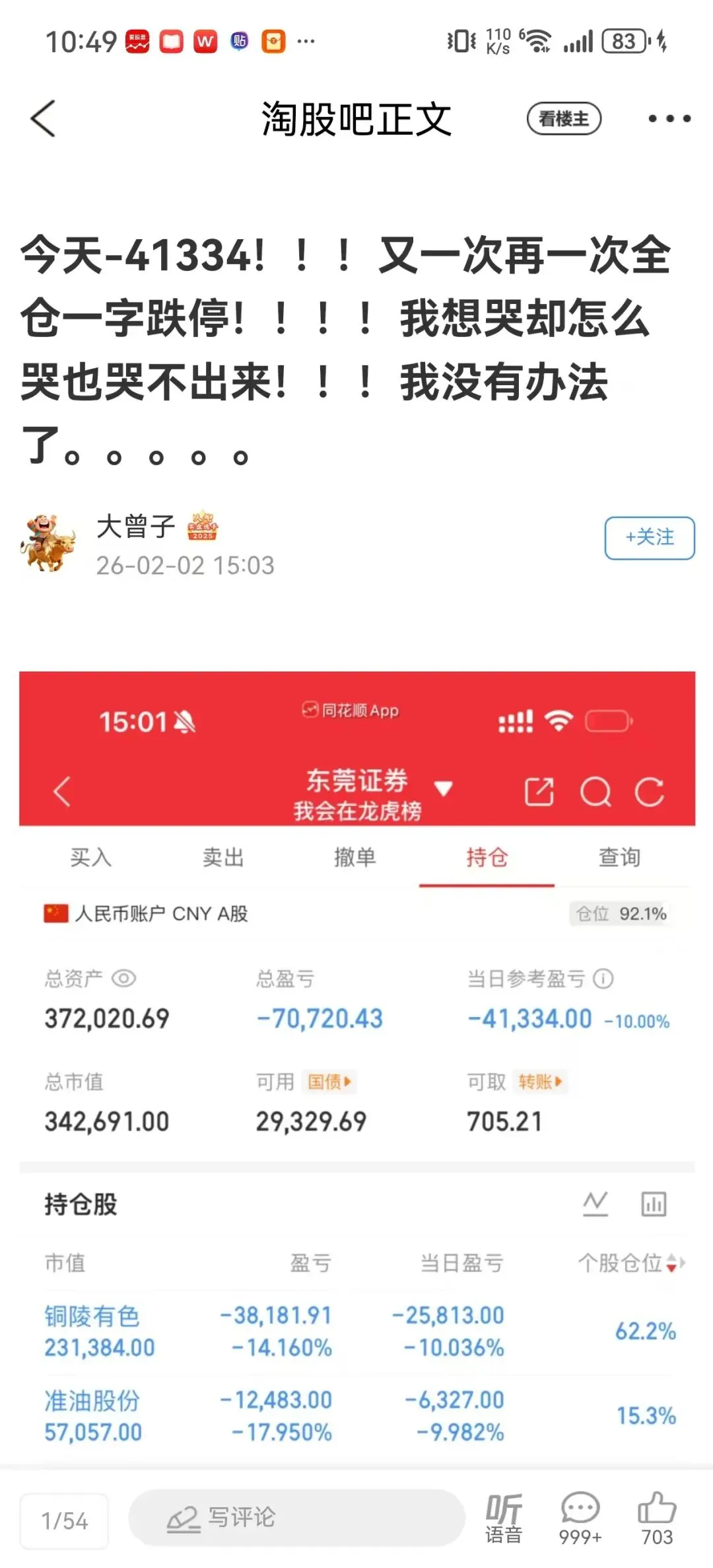 满仓涨停和满仓跌停都很难,巧了,大曾子都有过。跌停没事,人家可以收费短视频。大部分年轻人,中年男人,来这个股市,一家老小的压力都在你身上,真的有退路吗?
