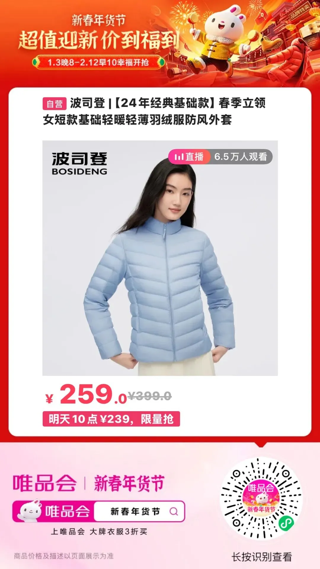 从周六开始就惦记着买点啥,可是下不了决心,怕亏大本。先生说:黄金跟股票一样,涨落跟你没什么关系,不用妄图去大发自己认知之外的财,因为那里有可能是个坑。想起十几年前,大约是2014、2015年吧,那年股票大涨,身边的炒股的人很激动,神算子一般,都预测那波大涨会持续到某某阶段,自己会稳稳当当地赚钱走人,然后过上躺平的日子。他们都在他们自己的意料之外、旁观者的意料之中地被套了。黄金是硬通货,是看得到摸得着的财富,不能像泡沫一样破灭了。我想了想:我就是想给小朋友买个新年小礼物礼物,前年买的周大福生肖牌,去年买的周大福手链,今年买什么呢?先生哈哈大笑:我以为你要买金砖呢!买个小首饰就不用纠结金价涨落了吧,高低差不了四位数。好多年前有一年春节,婆婆家那个村流行一个讲法,婆婆要给儿媳妇买一件黄金珠,保佑儿媳妇平安健康。那天我一进门,婆婆就给我一个小首饰袋,里面放了一个小金珠,还有一张发票。婆婆说:荷啊,我给你的是最大的,比她们几个大0.02克。我也忘了是那个小金珠总共是多少克了,反正要二百多元。当时被婆婆感动得稀里哗啦的,金珠多少钱不重要,重要的是我的地位高。后来三嫂的那枚小金珠找不到了,被我们妯娌几个数落一通:一颗永流传的纯金啊,你竟然丢了,太不重视了。我趁着乐呵跟她们说了实话:咱婆婆说了,给我的是最大的,你们可别干生气。这话传到大姐耳朵里,大姐也说了实话:大妈说给我的才是最大的,比你们几个都多了零点零几克。三嫂的那枚小金珠后来过年扫房的时候,在窗户的插销上找到了,小金珠被外孙女挂起来玩,忘了。现在想来很惭愧,婆婆在世的时候,吃穿用住什么都没缺,我却没想着给婆婆买一件金首饰。我自己并不喜欢首饰,所以不觉得那些是什么好东西,当年结婚时我妈给我买的金饰我从来也没戴过。我妈年轻时不喜欢戴金饰,六十多岁后开始喜欢,也都买上了。婆婆给我们买的小金珠虽然很小,可是她也没舍得给自己买一个。波司登轻羽特价捡漏:很暖和,很好看!