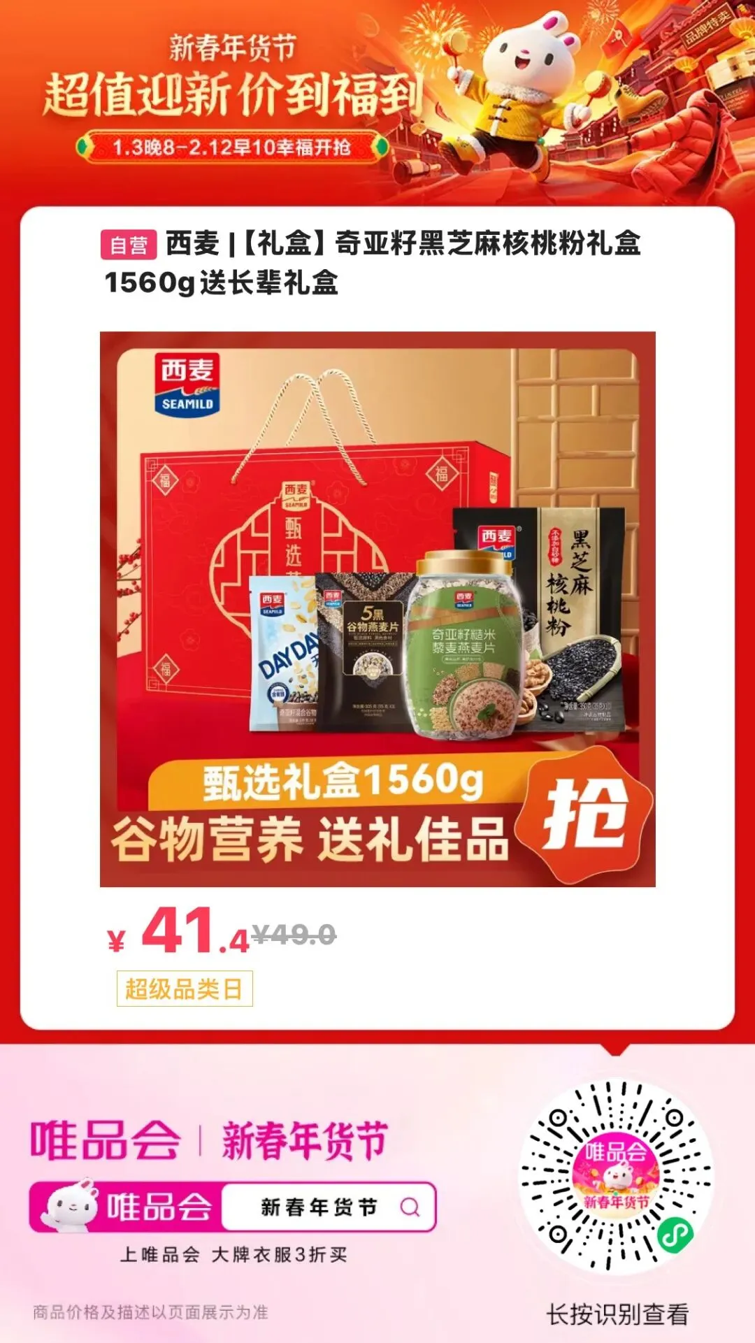 西麦奇亚籽黑芝麻核桃粉礼盒:给长辈送年礼,实用健康味道好!价格也合适!