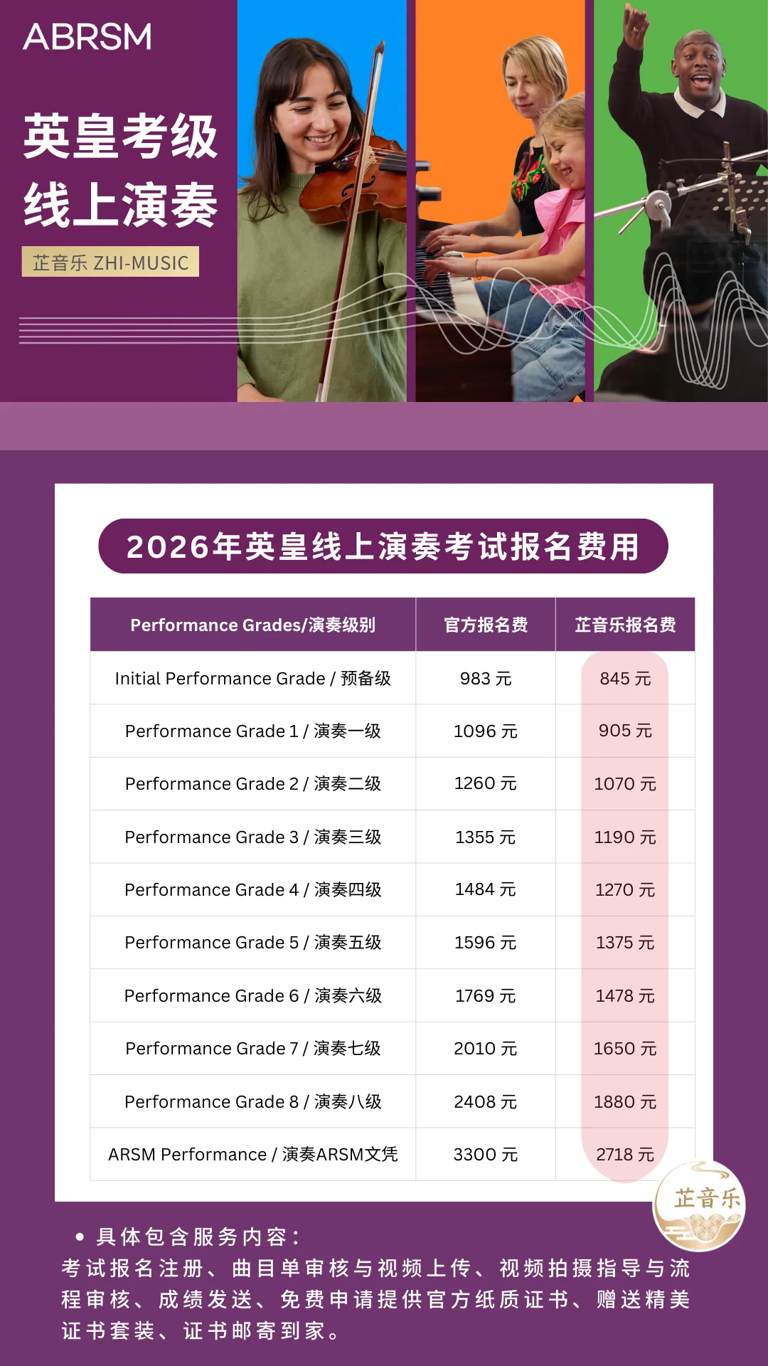 芷音乐提供比官网报名更优惠的价格,让你以最实惠的费用参加英皇考级,助你轻松迈向音乐梦想。
