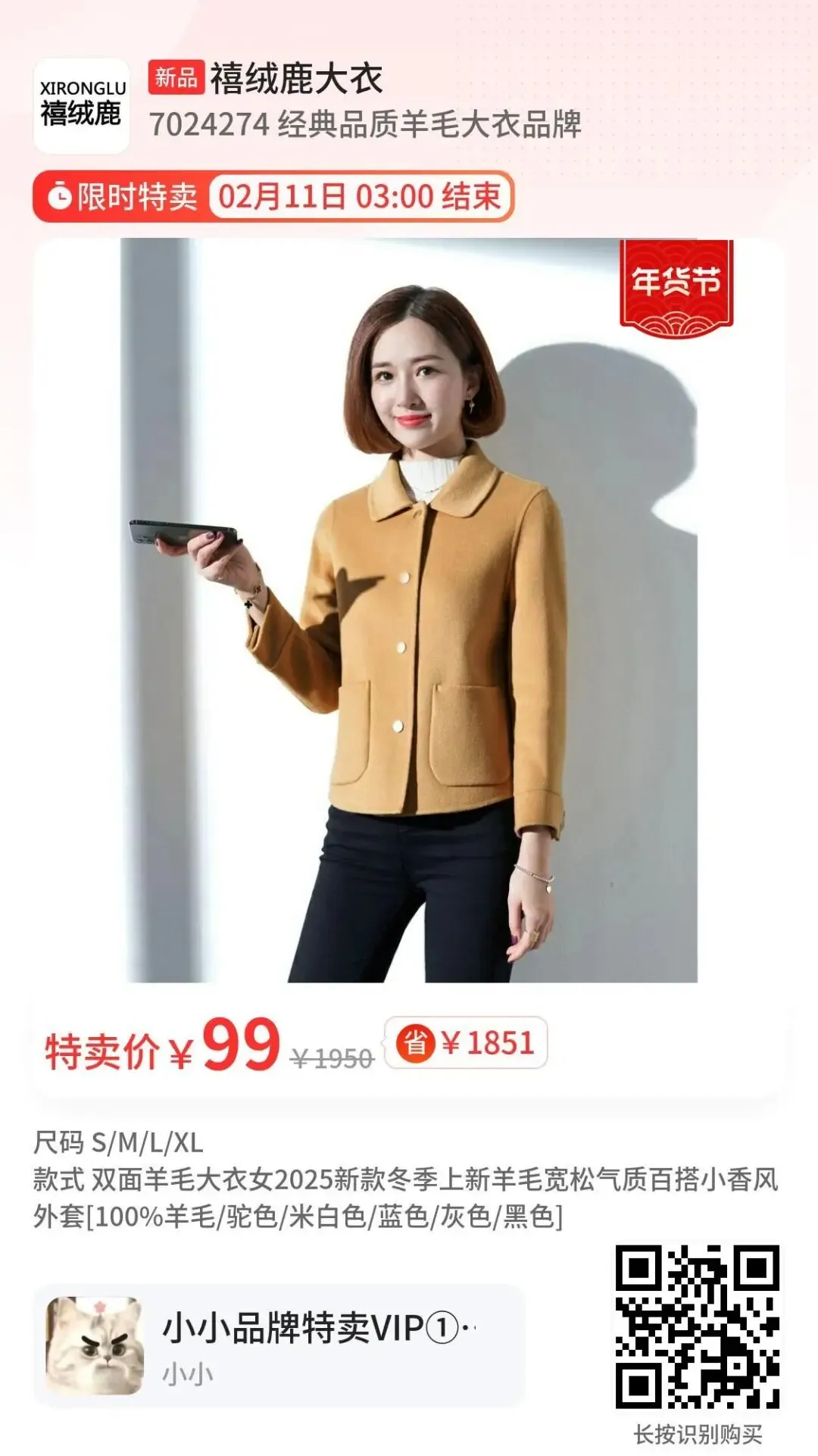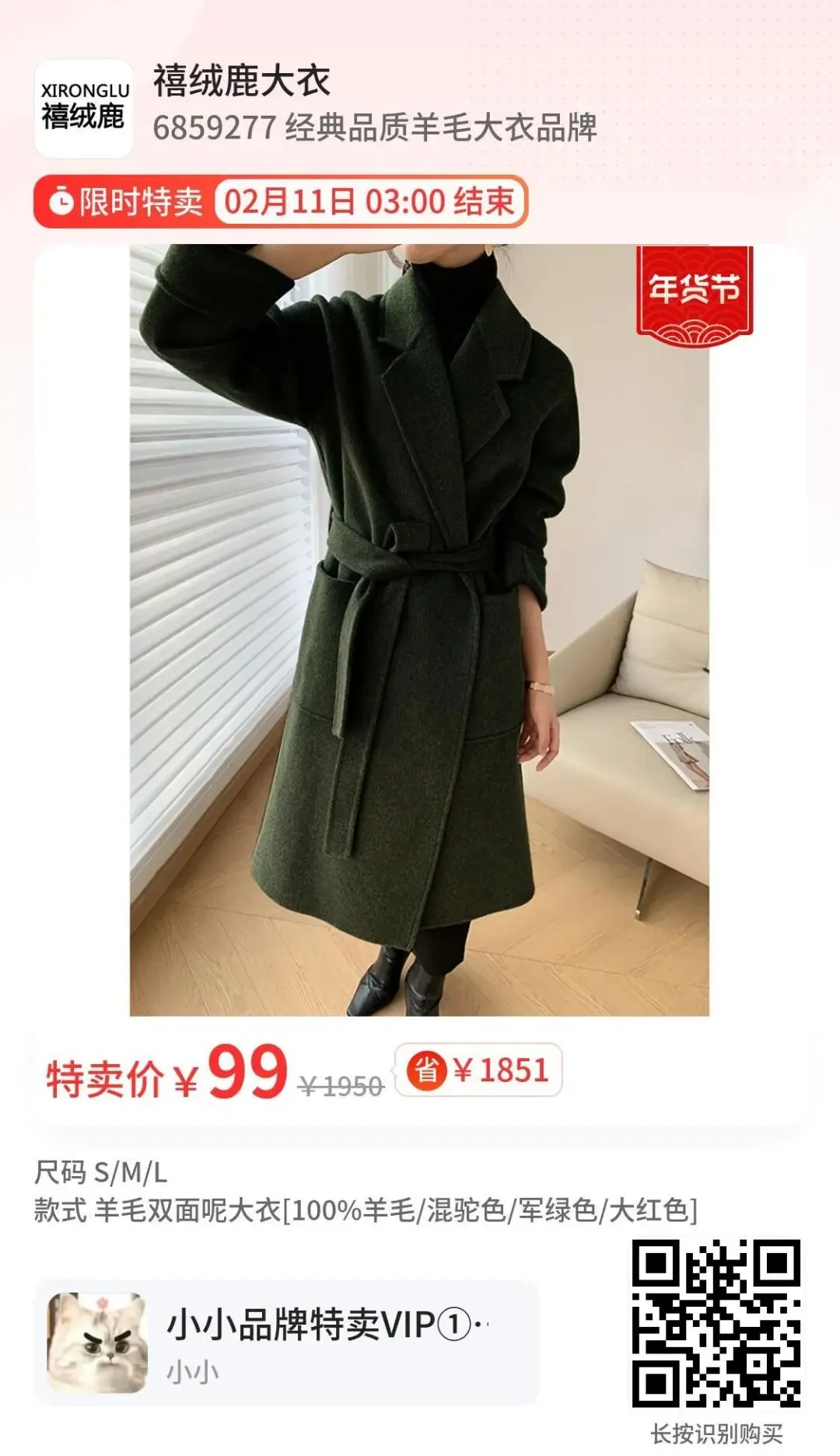 >先抢99的毛呢大衣多色可选都抢手这价格不用多犹豫一
