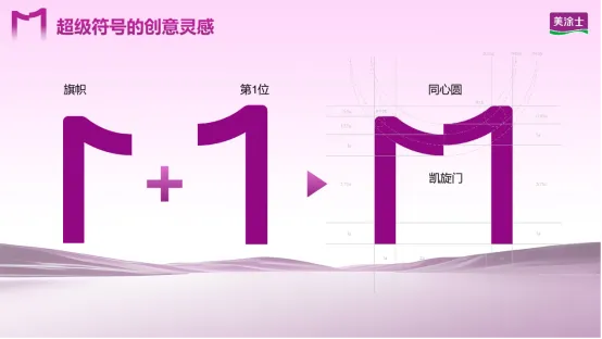 超级符号的创意灵感,最初源自一面象征携手同行、万向凯旋的“旗帜”以及NO.1的卓越目标追求,最终幻化为“胜利之门”,并与品牌首字母“M”实现了完美融合。“M”作为“美涂士”(Maydos)的首字母,承载着“1心造美,1往无前”的坚定品牌信念。