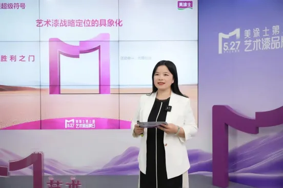 在本次备受瞩目的发布会上,市场总监何凤玲以专业且深入浅出的方式,对美涂士艺术漆超级符号的诞生历程、价值内涵,以及品牌视觉形象升级的全新图景进行了全面诠释。何总强调,在当下竞争白热化的市场环境中,一个独具特色、鲜明易记的符号,往往能在消费者心智中留下难以磨灭的印记。美涂士艺术漆超级符号,正是我们精心雕琢的“记忆锚点与价值图腾”。它巧妙融合了文化符号、品牌原创符号与感官符号的三重基因,绝非仅仅是视觉层面的创意呈现,更是品牌战略的生动具象化表达。