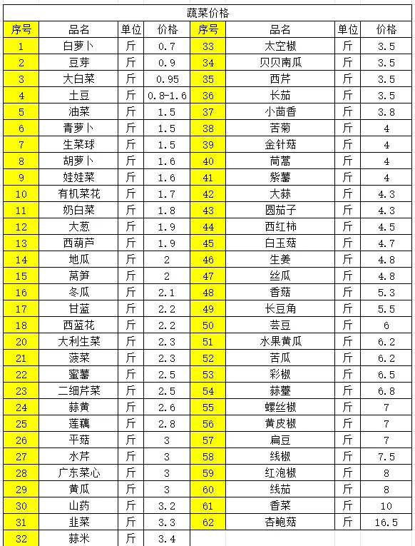 1、蔬菜价格