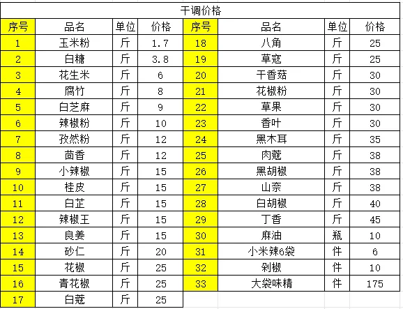 4、干调价格