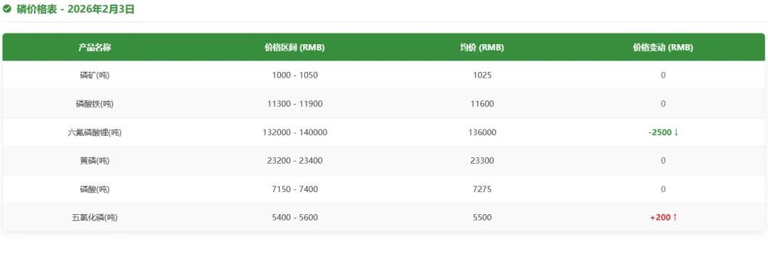 今日磷价格如下: