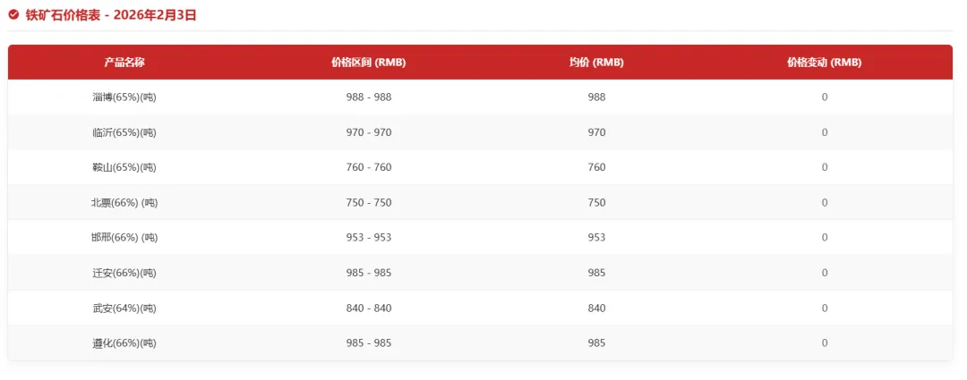 今日铁矿石价格如下: