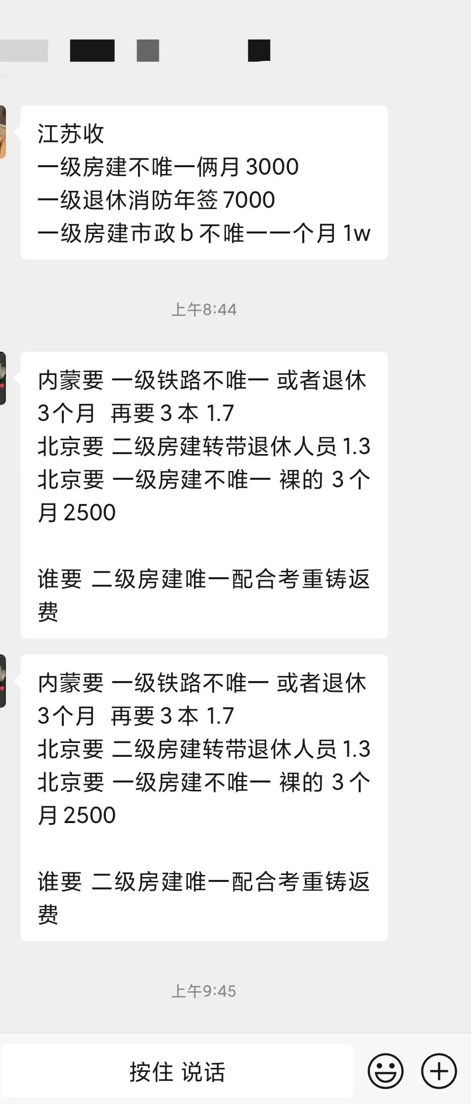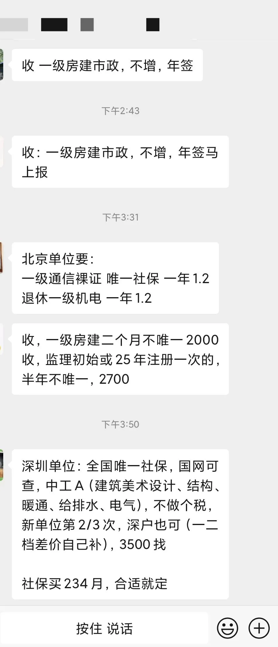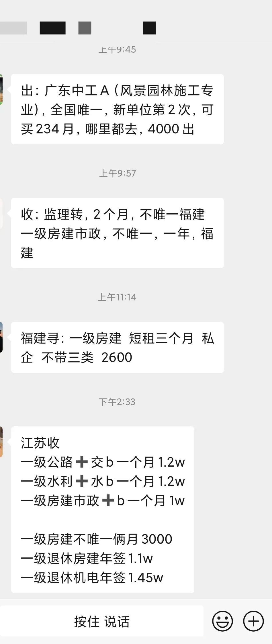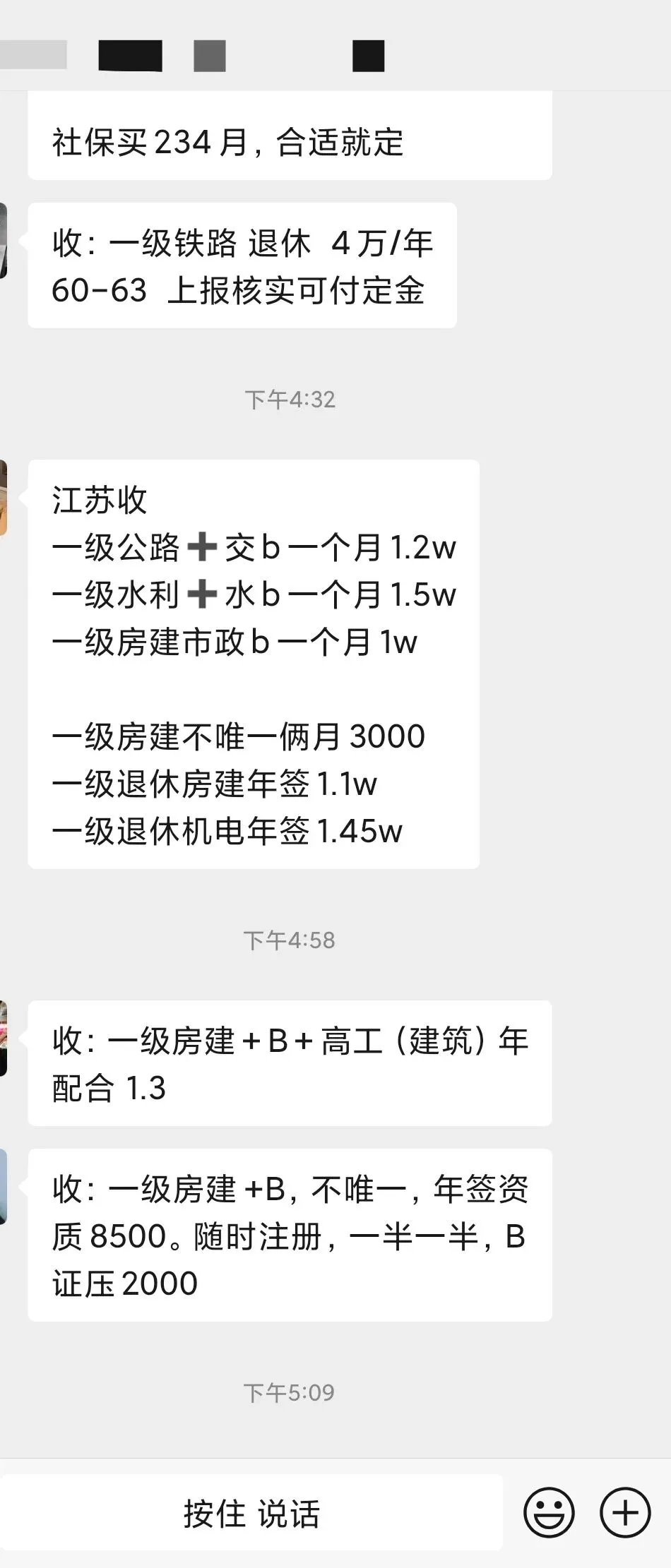 收:一级房建+B,不唯一,年签资质0.85。随时注册,一半一半,B证压0.2