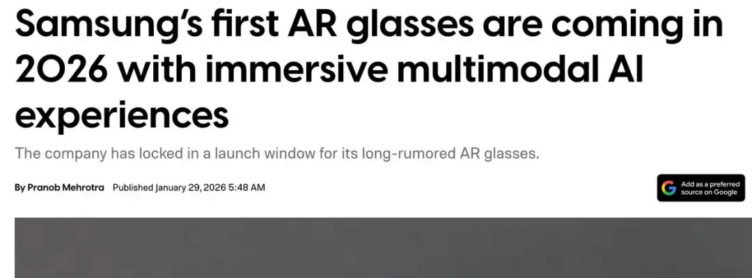 三星2026将发布新一代AR眼镜:价格或远低1799美元,正面迎战Meta