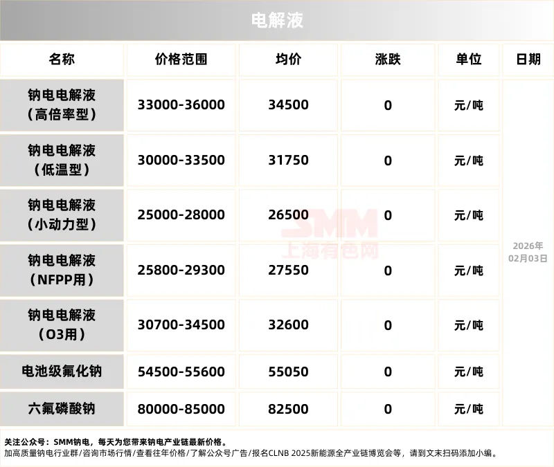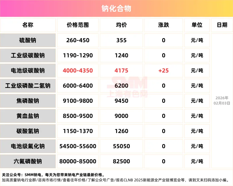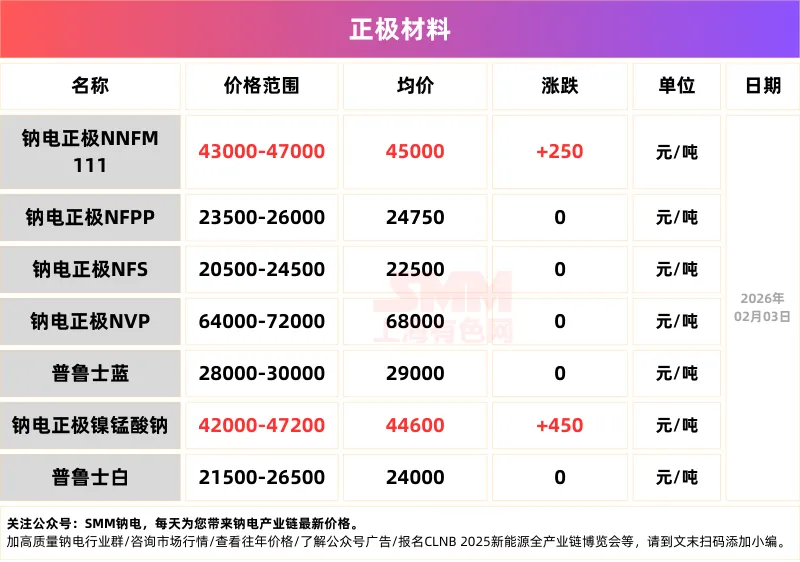 每日获取最新钠化合物、前驱体、正极材料、硬碳、电芯、电解液价格
