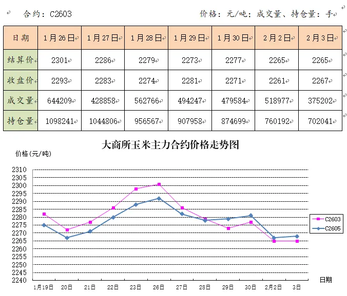 >2月3日大连商品交易所玉米期货行情