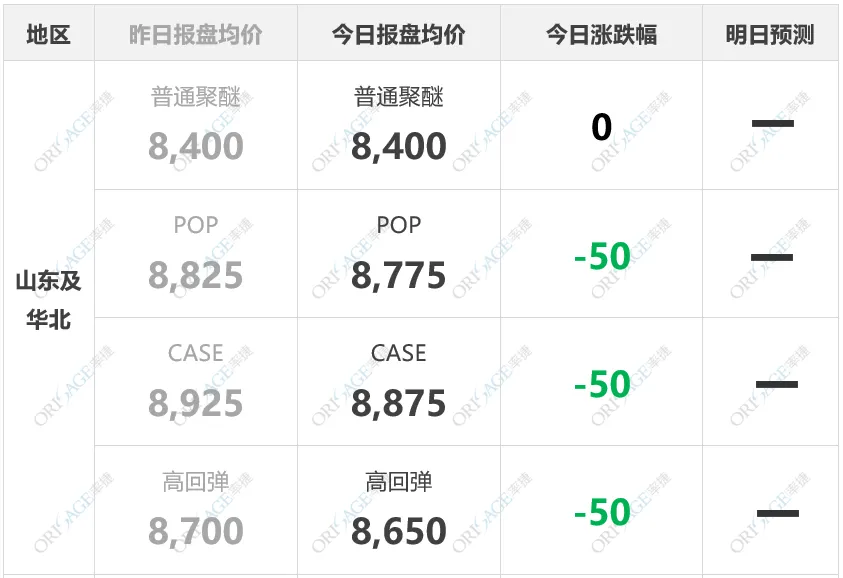周二,国内PO市场重心下滑。