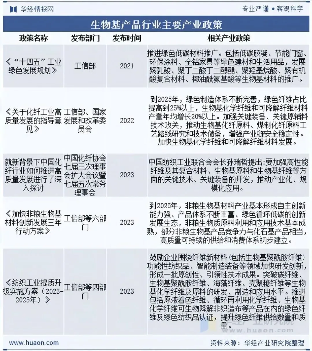 “绿色制造”是我国经济社会发展的一项重大战略决策,在环保形势日益严峻的背景下,我国正大力推广可持续发展的战略思想。生物基产品行业是我国战略性新兴产业的主攻方向,全国各省市相关主管部门出台了一系列鼓励生物基产品发展的产业政策。