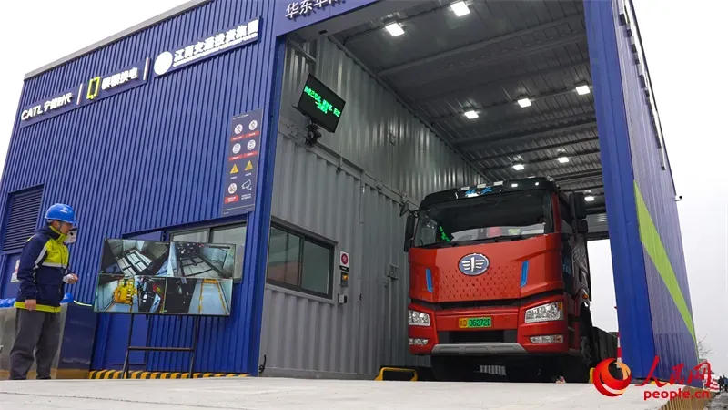 这条重卡换电走廊由省交通投资集团与宁德时代共同打造,位于金溪、龙虎山、三清山、赣县、兴国北、龙南等6对高速服务区共12座换电站,单次换电时间约3分钟,有效解决新能源重卡运营里程焦虑。