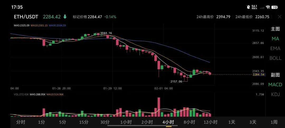 - 日线级别:仍处于下降通道中,1月31日大阴线破位后,连续失守2800、2500、2300美元关口,整体趋势偏空
